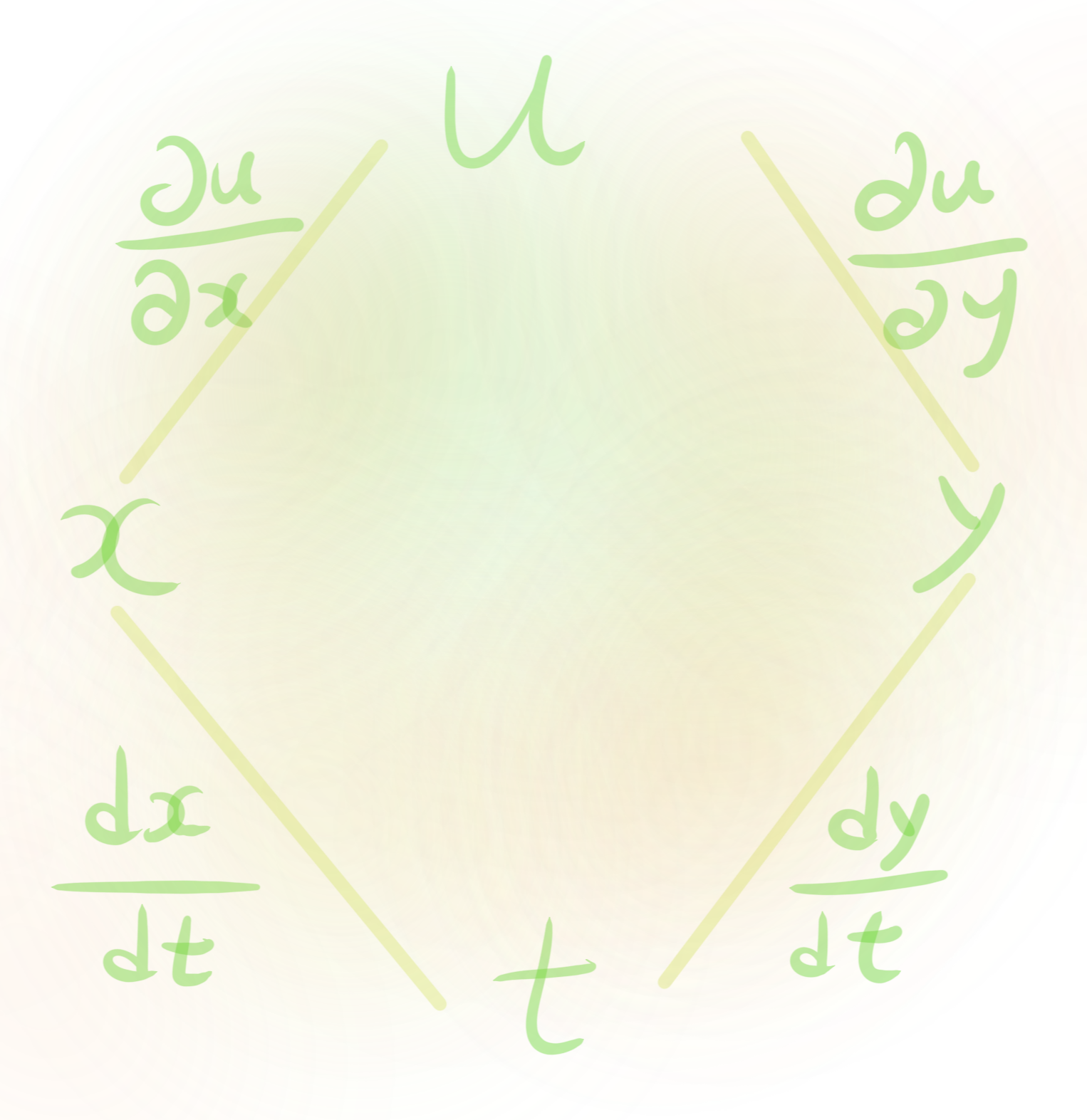 \frac{d u}{d t}=\frac{\partial u}{\partial x} \cdot \frac{d x}{d t}+\frac{\partial u}{\partial y} \frac{d y}{d t} .