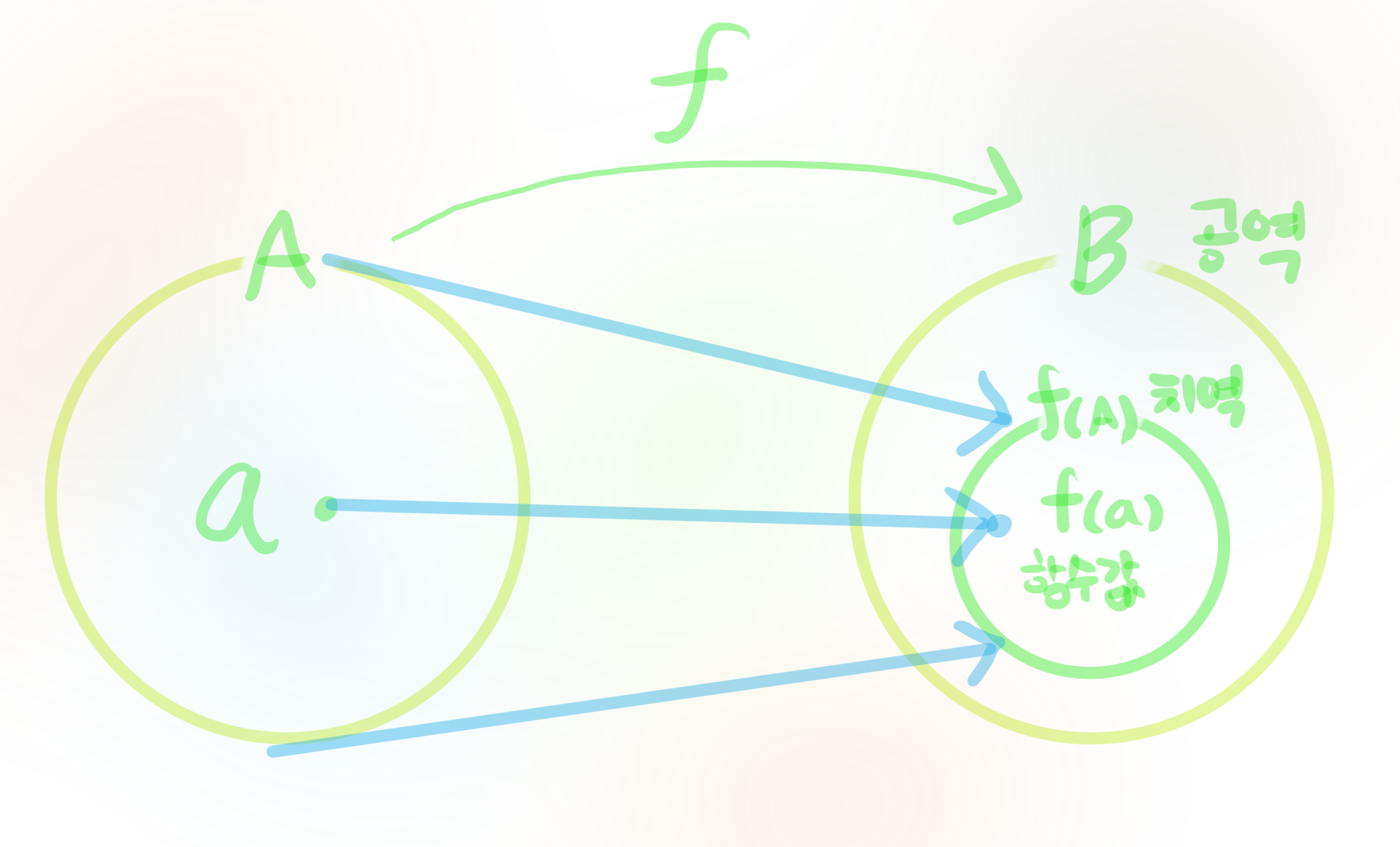 함수값의 모임 $F(A)={F(a)∈B| a∈A}$을 치역 (range or image)이라고 부른다.