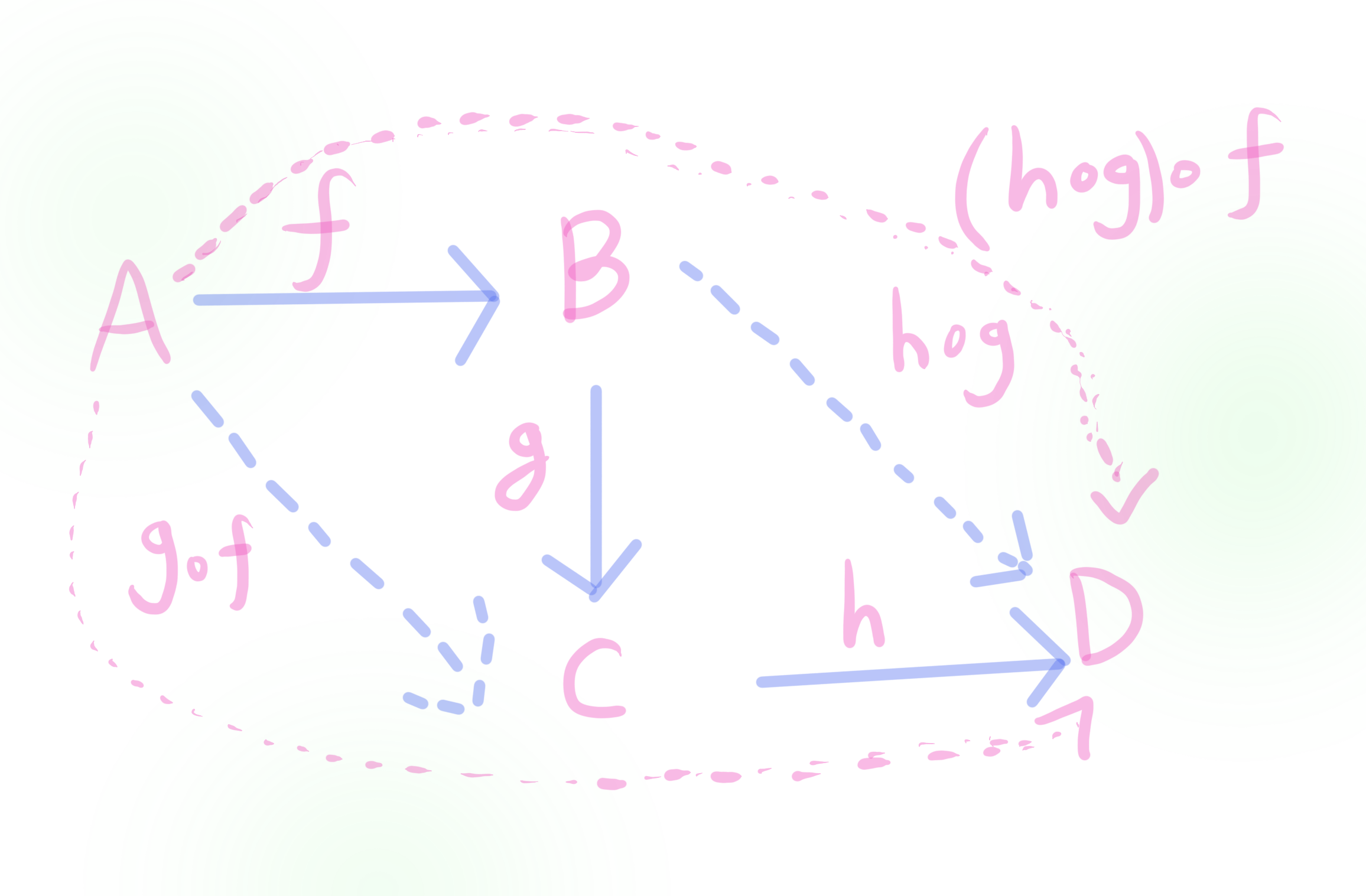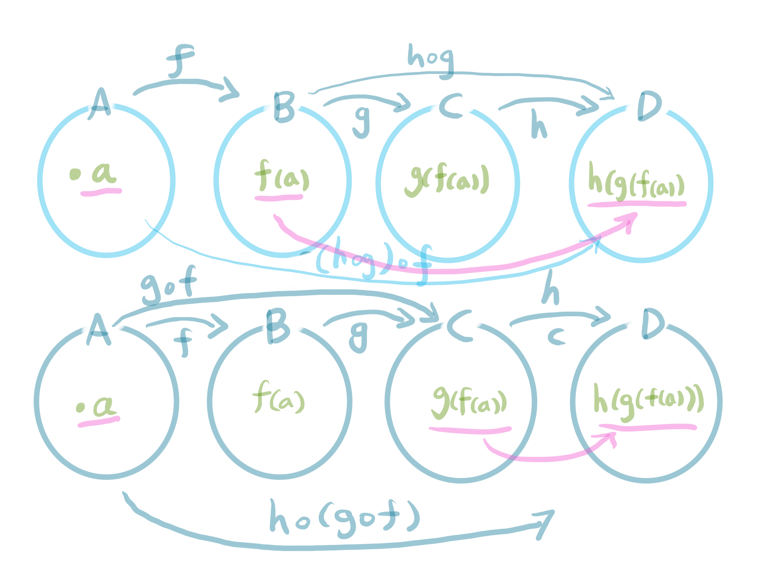 다시 말해서, $(h\circ{g})\circ{f}=h\circ(g\circ{f})$이 성립한다.