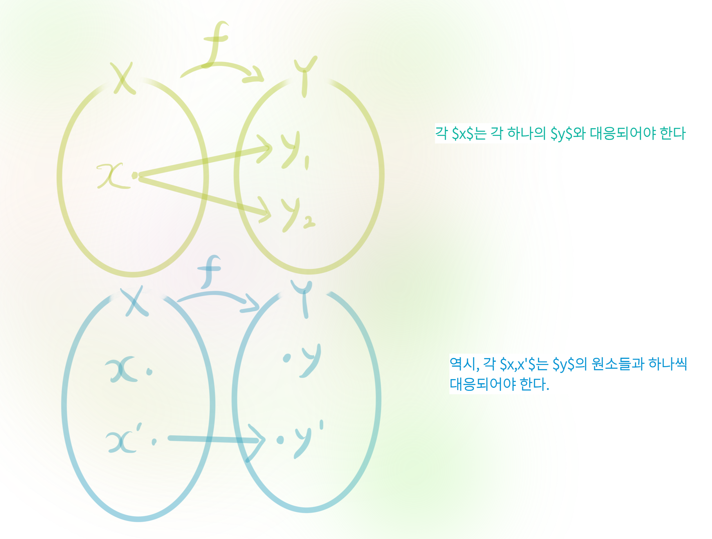 다만, 위의 그림들은 비유일뿐 아직 함수가 무엇인지 수학적으로 규정된 것은 아니다. 그리고 수학적 대상이 정의되려면 결국 '명사'로서 규정되어야 한다.