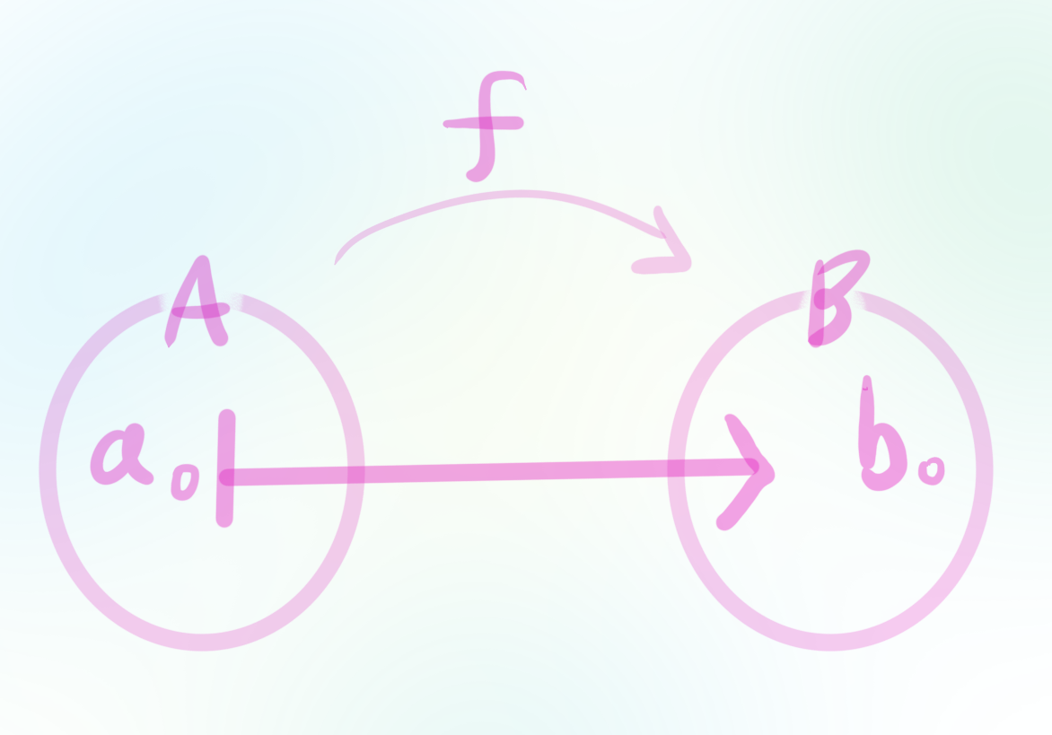 함수의 정의 두 집합 $A,B$가 있다고 가정하자. 이로부터 $A,B$로부터 곱집합 $A,B={(a,b)|a∈A,b∈B}$을 고려하자.