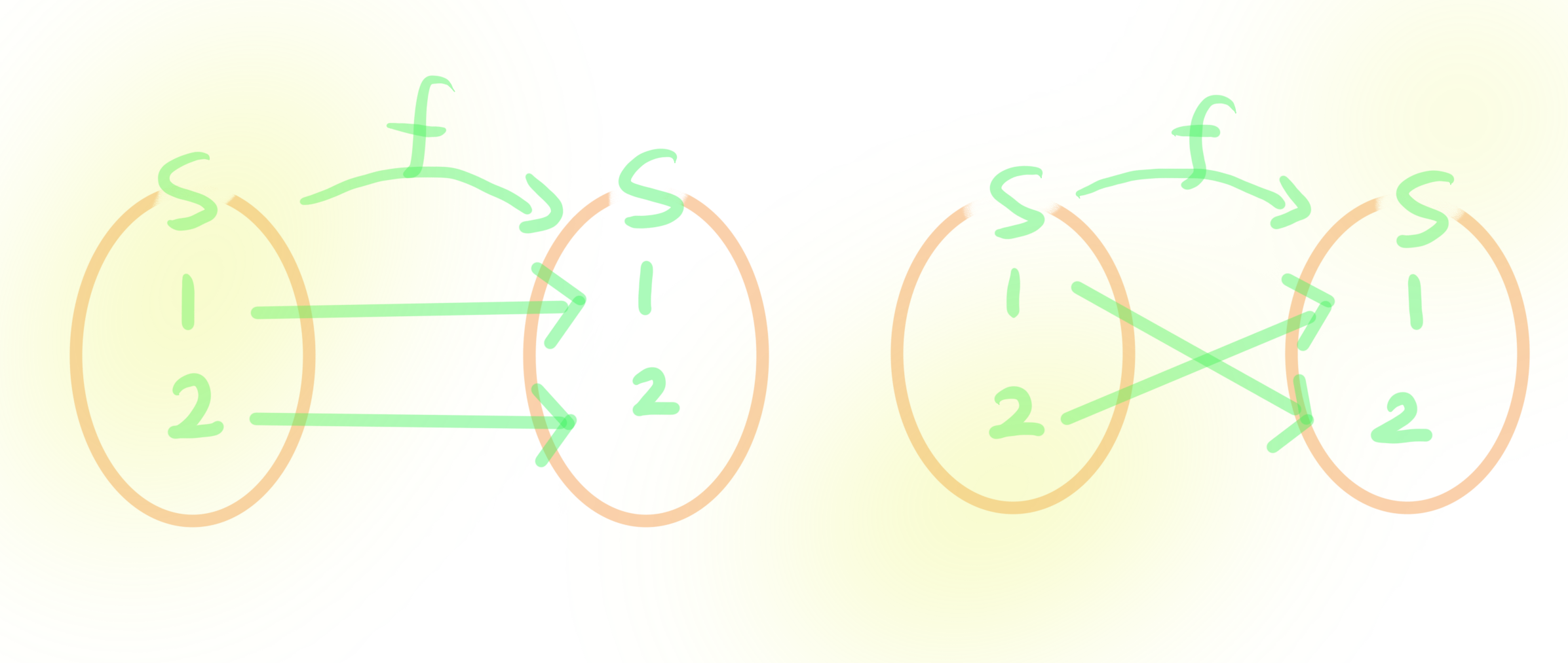 2,3차 대칭군 $S_2,S_3$ $S={1.2}$에 대해 다음의 두 함수를 정의하자: