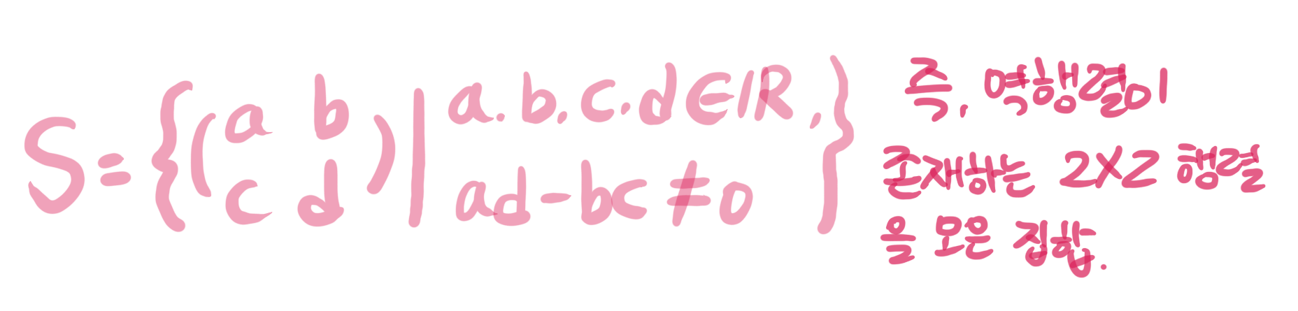 $S$는 행렬간의 곱셈을 연산으로 갖는 군이 된다.
