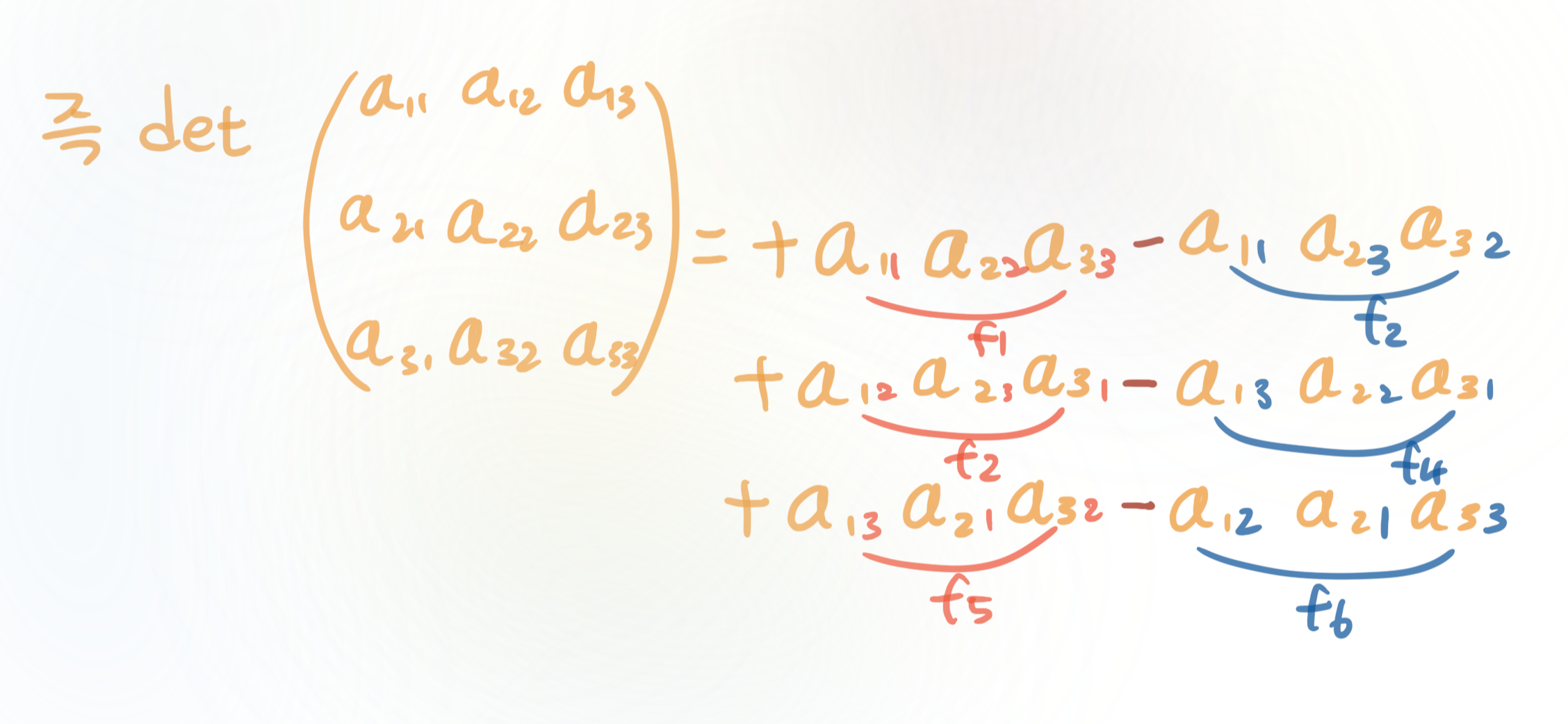 부터 다시 살펴봅시다. $+a_{11}a_{22}-a_{12}a_{21}$ 는,