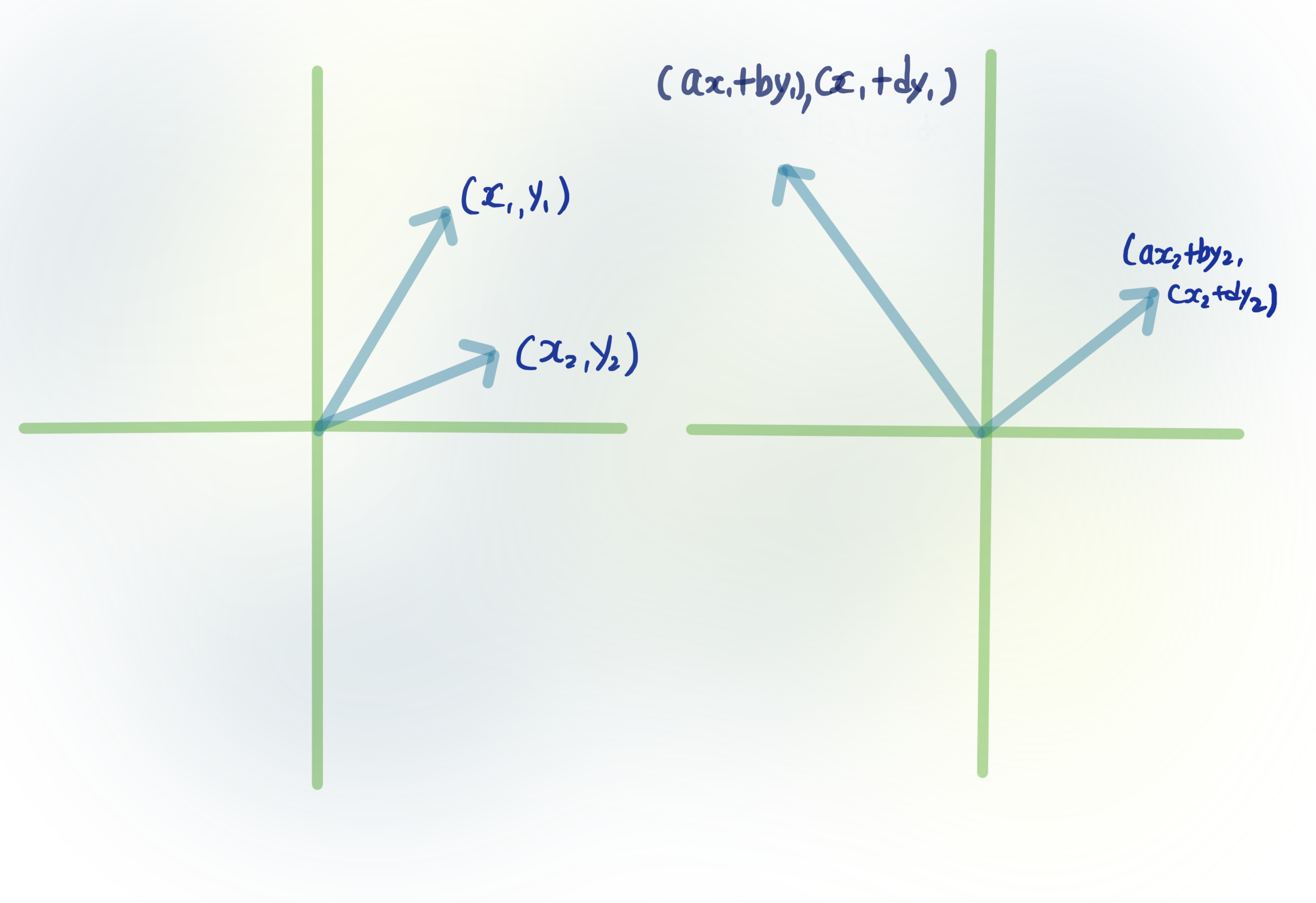 $(ax_1+by_1, cx_1+dy_1). (ax_2+by_2, cx_2+dy_2)$로 (선형적으로) 옮겨주고 있다.